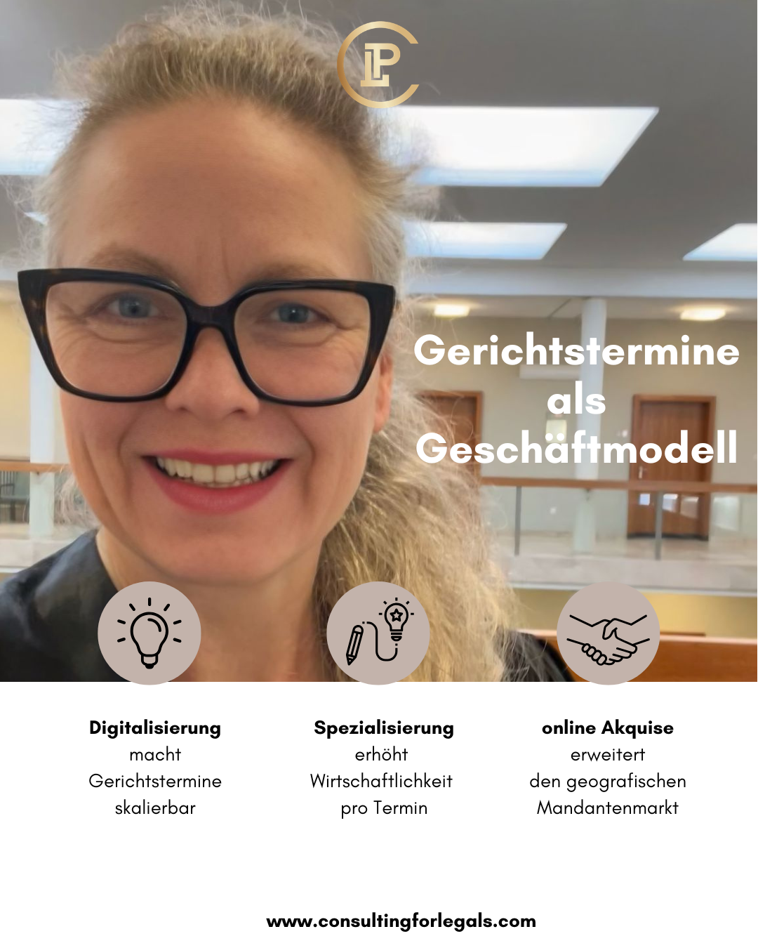 Strategisch betrachtet sind Gerichtstermine heute aber zunehmend ein Bestandteil eines skalierbaren Kanzlei-Geschäftsmodells.