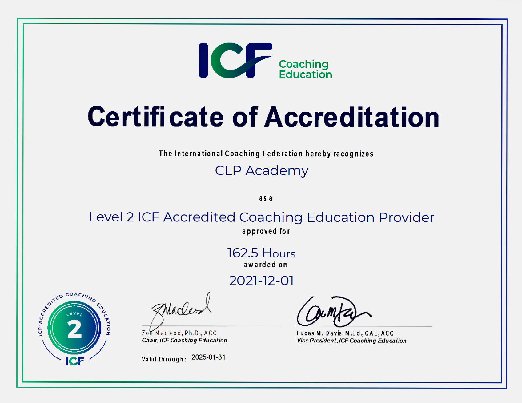 ICF Akkreditierung für das Legal Coaching Training Program der CLP-Academy