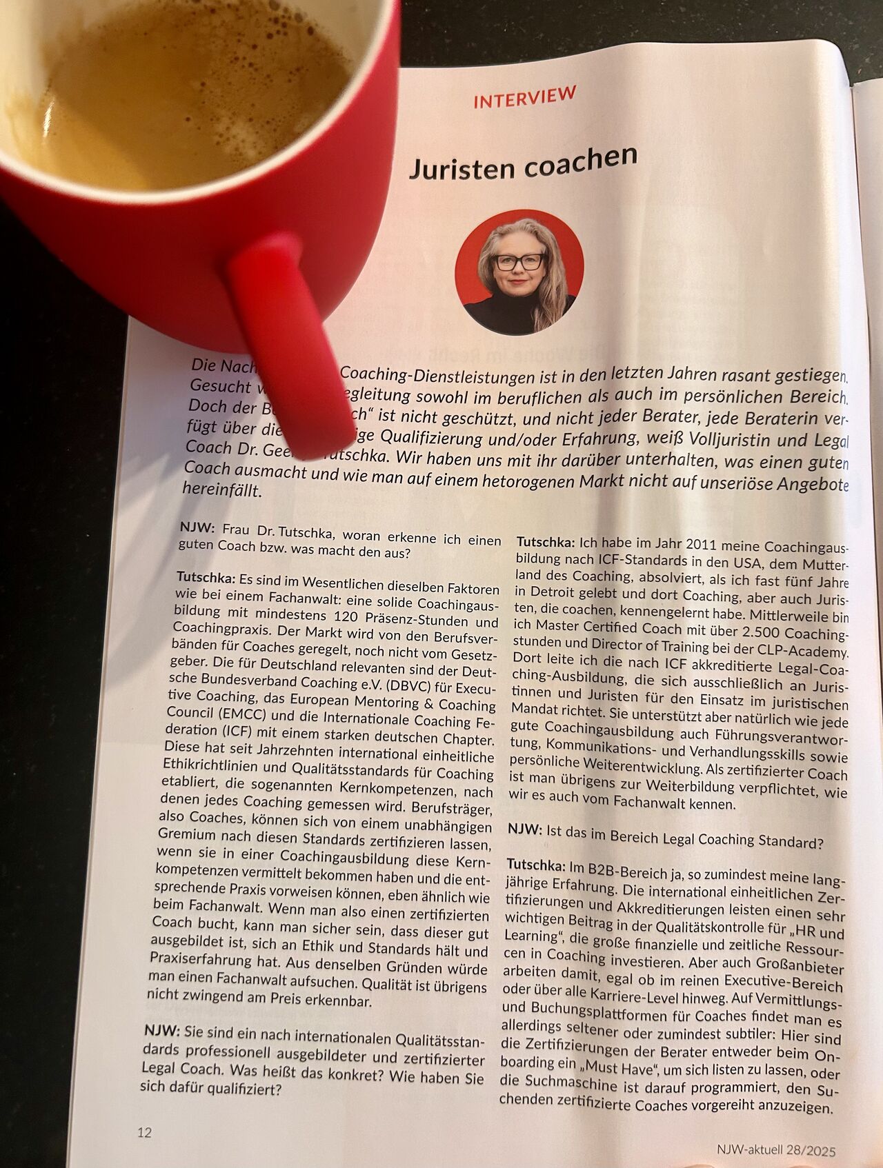 In der aktuellen NJW 28/2025 berichtet Dr. Geertje Tutschka, MCC von ihrer Arbeit als auf Coaching spezialisierte Juristin.