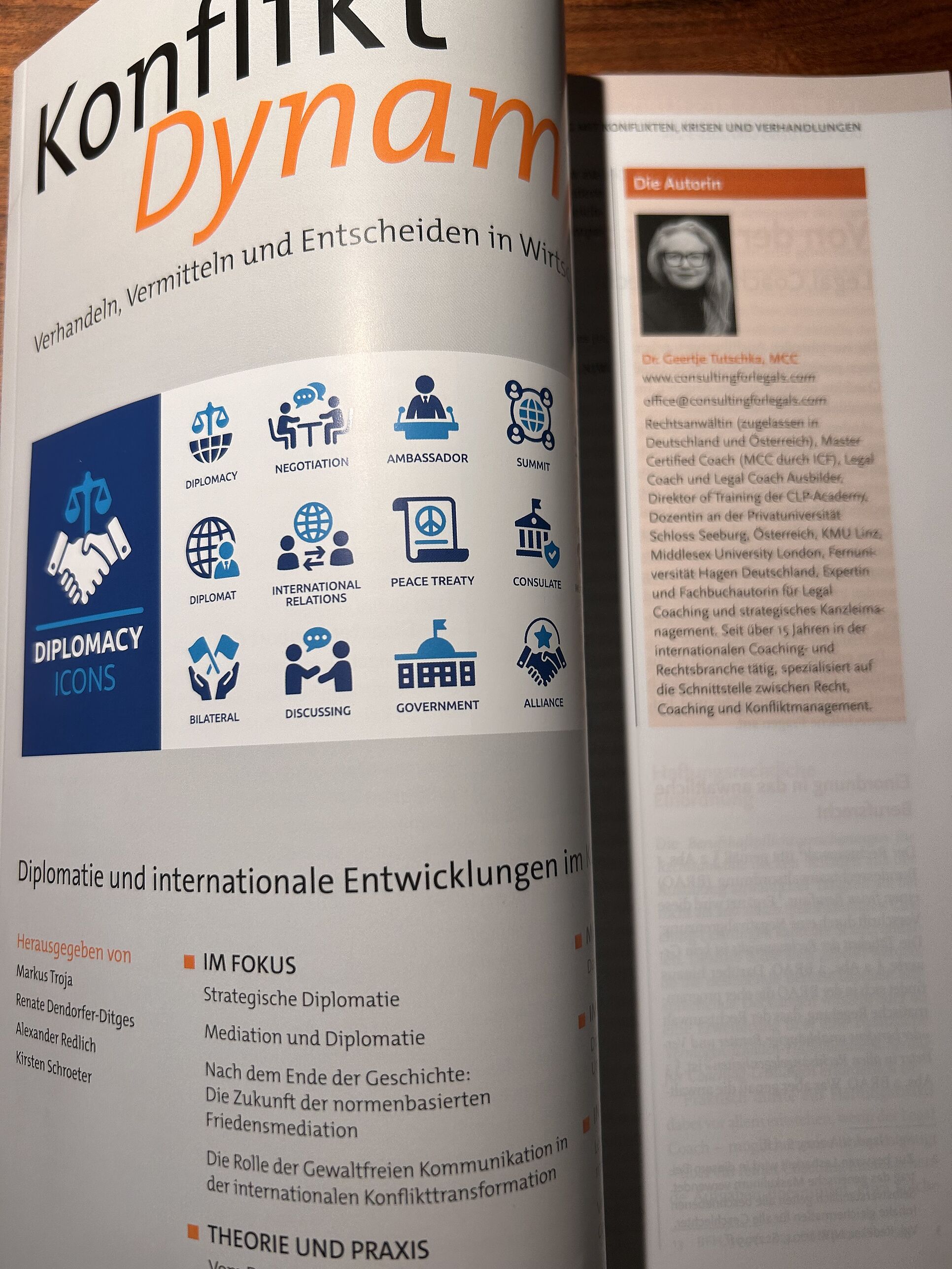 Dr. Geertje Tutschka stellt den interdiszipliären Ansatz zur Stärkung von Kofliktkompetenz und Verhandlungsfähigkeit im juristischen Fachmagazin für Mediatoren KONFLIKTDYNAMIK vor.