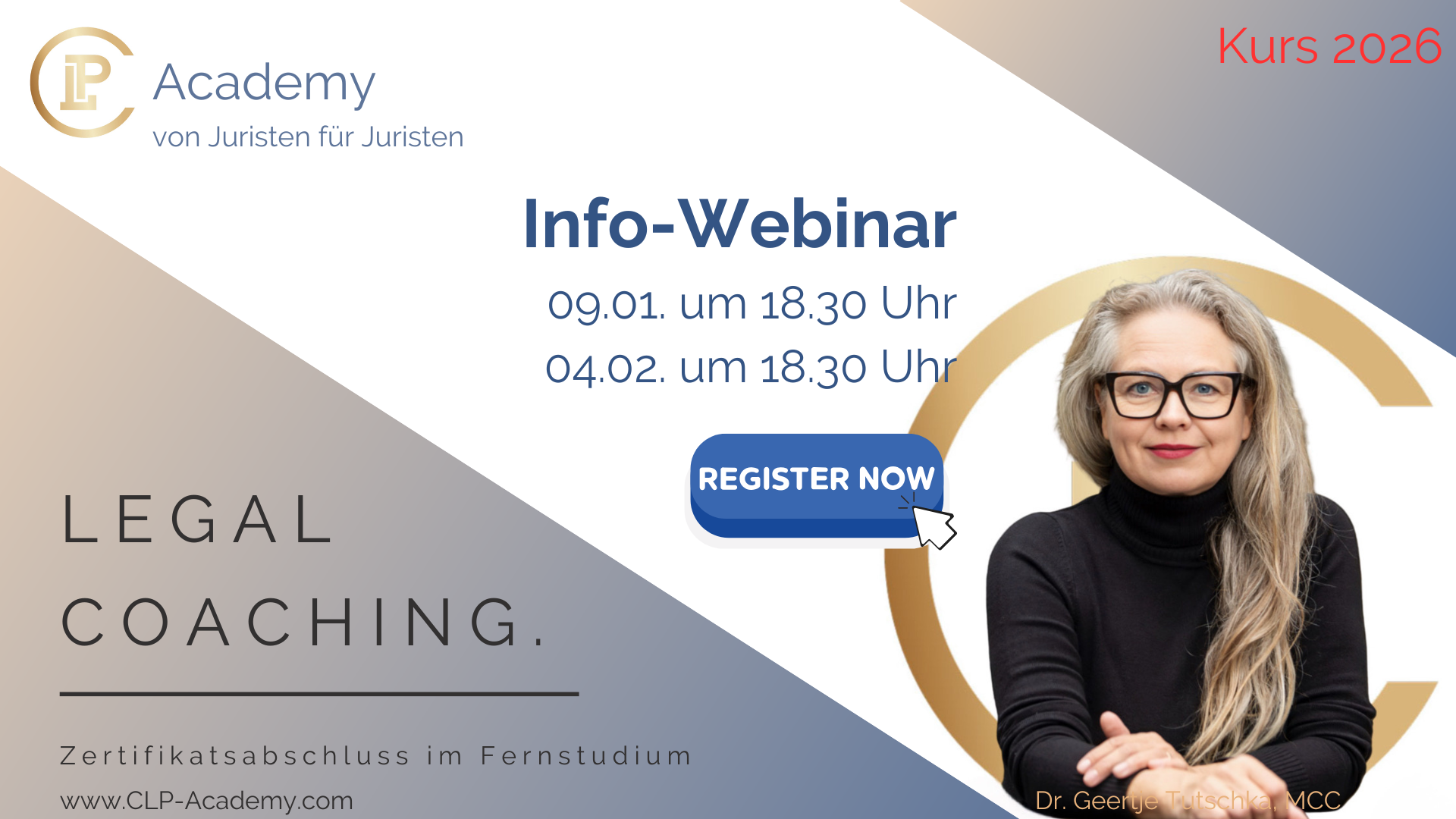 Bei der CLP-Academy startet die nächste Zertifikatsausbildung im Legal Coaching im Sommer 2026!